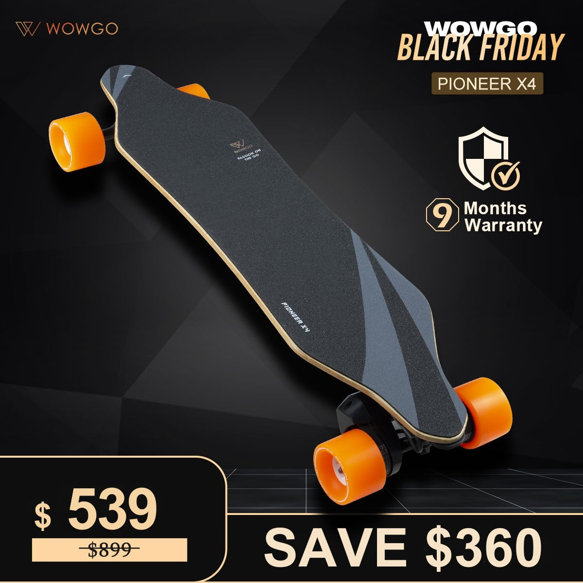9 Months Warranty on all WowGo Electric Skateboards. Our extended warranty period isn't just a show of support for our community; it's a testament to our unwavering faith in the superior quality of our products. Experience the best, because you deserve it.